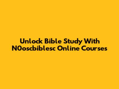 Unlock Bible Study With N0oscbiblesc Online Courses