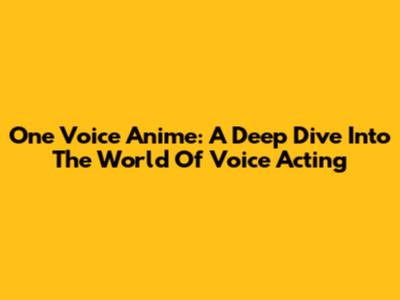 One Voice Anime: A Deep Dive Into The World Of Voice Acting