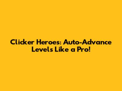 Hey guys! Are you ready to take your Clicker Heroes game to the next level? If you're anything like me, you've probably spent countless hours clicking your way through hordes of monsters. But what if I told you there's a way to automate the process and auto-advance through levels like a total pro? Buckle up, because we're about to dive deep into the world of Clicker Heroes and unlock the secrets to effortless progression.