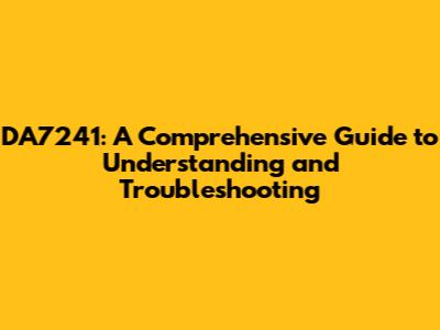 DA7241: A Comprehensive Guide To Understanding And Troubleshooting