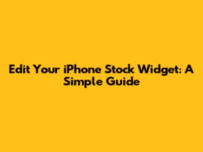 Edit Your IPhone Stock Widget: A Simple Guide