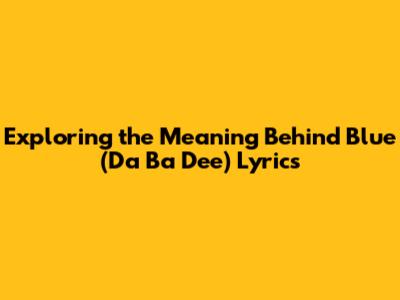Hey music lovers! Ever found yourself humming along to a catchy tune without really knowing what it's about? Well, let's dive deep into the vibrant world of the Eiffel 65 hit, "Blue (Da Ba Dee)". It's a song that's been stuck in our heads since the late 90s, but have you ever stopped to analyze the lyrics? What does "da ba dee da ba die" even mean? Let's break down the lyrics and explore the meaning behind this iconic dance anthem, focusing on the often-misunderstood lyrics and their surprisingly profound undertones. We'll examine the core meaning and discuss the cultural impact. Get ready to have your understanding of this classic song completely transformed, guys!