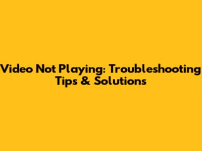 Fix Video Not Playing: Troubleshooting Tips & Solutions