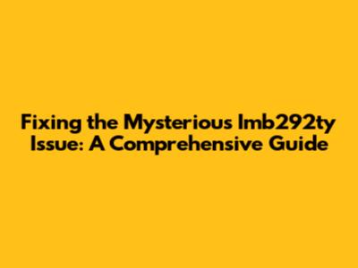 Fixing The Mysterious Imb292ty Issue: A Comprehensive Guide