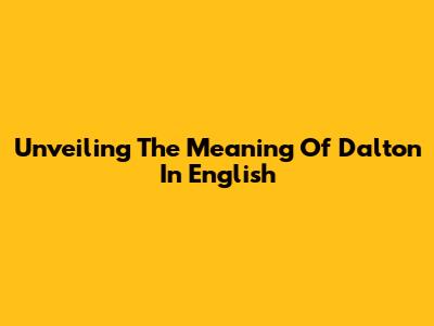 Unveiling The Meaning Of Dalton In English