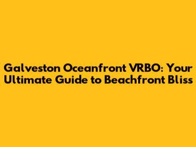 Galveston Oceanfront VRBO: Your Ultimate Guide