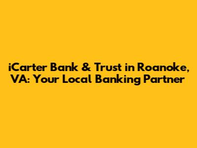 Hey everyone! Let's dive into the world of iCarter Bank & Trust in Roanoke, Virginia. This isn't just about a bank; it's about a local institution deeply rooted in the community. We're going to explore what makes iCarter Bank & Trust a solid choice for your financial needs, covering everything from its services to its community involvement, and why it's a worthwhile consideration for Roanoke residents. This exploration will help you understand why iCarter Bank & Trust stands out in the crowded financial landscape. So, grab a coffee, and let's get started. We'll make sure to explore different aspects to ensure you have all the necessary information, and you are well-equipped to make informed decisions about your financial future. Because when it comes to your money, knowledge is definitely power.
