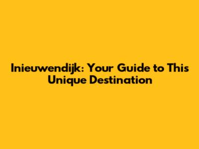 Why Inieuwendijk Should Be Your Next Destination