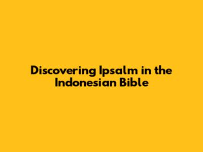 Hey everyone! Today, we're diving deep into something super interesting: Ipsalm in the Indonesian Bible. You might be wondering, "What exactly is Ipsalm?" Well, stick around, because we're going to unpack all of it. We'll explore its meaning, its significance, and how it appears in various Indonesian translations of the Bible. It's a fascinating linguistic and theological journey, guys, and I'm stoked to share it with you. So, grab your Bibles (or just your curiosity!), and let's get started on this exploration. Understanding terms like Ipsalm can really enrich your Bible study experience, offering new perspectives and deeper insights into the sacred texts. It's not just about knowing the words; it's about grasping the cultural and historical context that shaped them, and how they've been preserved and transmitted through different languages and eras. The Indonesian Bible, with its unique linguistic tapestry, offers a special lens through which to view these ancient scriptures.