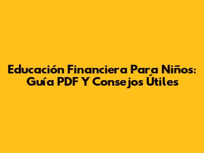 Educación Financiera Para Niños: Guía PDF Y Consejos Útiles
