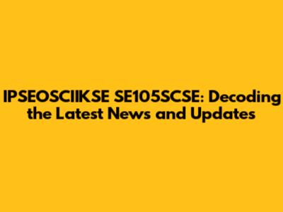 Unveiling the IPSEOSCIIKSE SE105SCSE: What You Need to Know
