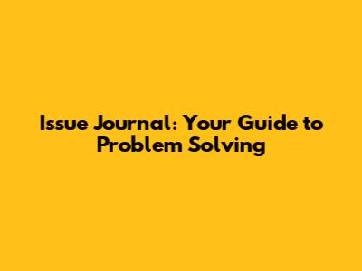 Issue Journal: Your Guide To Problem Solving