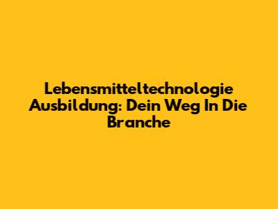 Lebensmitteltechnologie Ausbildung: Dein Weg In Die Branche