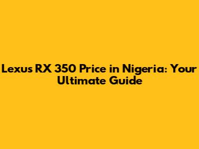 Lexus RX 350 Price In Nigeria: Your Ultimate Guide