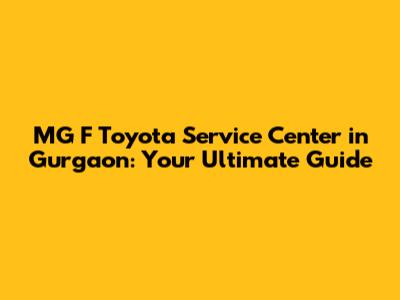 MG F Toyota Service Center In Gurgaon: Your Ultimate Guide
