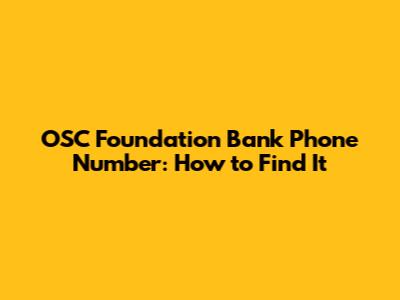 OSC Foundation Bank Phone Number: How To Find It