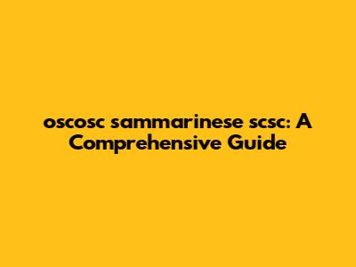 Oscosc Sammarinese Scsc: A Comprehensive Guide