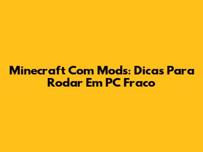 Minecraft Com Mods: Dicas Para Rodar Em PC Fraco