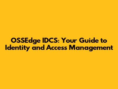 OSSEdge IDCS: Your Guide To Identity And Access Management