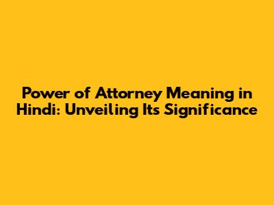 Hey guys! Ever heard of a Power of Attorney (POA)? It's a super important legal document, and if you're looking for the Power of Attorney meaning in Hindi, you've come to the right place. We'll break down everything you need to know, from what it is, its different types, and even how to find a Power of Attorney PDF in Hindi. Think of it as your personal guide to navigating the world of POAs! It's basically a legal paper that allows someone you trust (called the "agent" or "attorney-in-fact") to act on your behalf. This person can make decisions for you regarding your finances, property, healthcare, and other important stuff. So, why is this important, especially when looking at the Power of Attorney meaning in Hindi? Well, life happens, right? Sometimes, you might be unable to handle your own affairs due to illness, travel, or any other reason. A POA ensures that someone you trust can step in and manage things for you. This could be anything from paying bills and managing your investments to selling your property or making healthcare decisions. The beauty of a POA lies in its flexibility. You get to decide the scope of authority you grant. You can make it very specific, allowing the agent to handle only certain tasks, or you can make it more general, giving them broad powers. This degree of control is super valuable. The most important thing is that it gives you peace of mind knowing that your affairs are in good hands, no matter what happens. We'll dive deeper into the types of POAs and how they work. This is the first step in understanding the Power of Attorney meaning in Hindi and how it impacts your life and those of your loved ones. We're also going to explore how to access this information in Hindi, to help you with your search. Think of this as your one-stop shop for everything related to Power of Attorney! This way you are able to take the necessary steps to protect your future!
