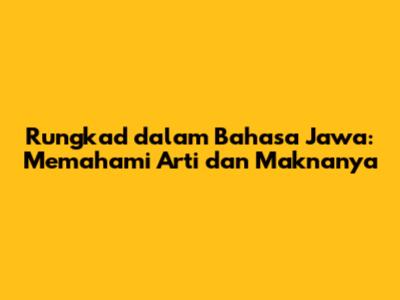 Rungkad adalah kata yang sering kita dengar, terutama dalam percakapan sehari-hari atau dalam lagu-lagu Jawa yang sedang hits. Tapi, rungkad artinya apa sih sebenarnya? Nah, mari kita kupas tuntas tentang makna dan penggunaan kata yang satu ini, guys! Dalam artikel ini, kita akan menjelajahi arti rungkad dalam bahasa Jawa, serta bagaimana kata ini digunakan dalam berbagai konteks, dari percintaan hingga kehidupan sosial.