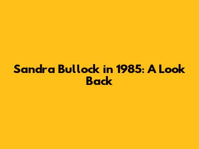 Sandra Bullock In 1985: A Look Back