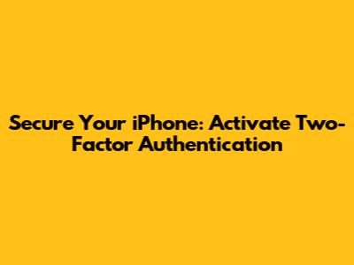 Secure Your IPhone: Activate Two-Factor Authentication