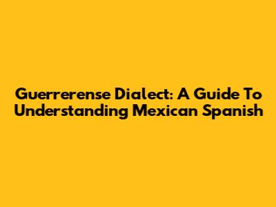 Guerrerense Dialect: A Guide To Understanding Mexican Spanish