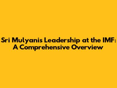 Sri Mulyani's Contributions and Impact on the IMF