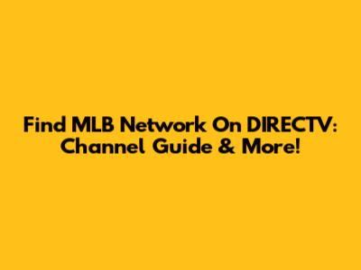 Find MLB Network On DIRECTV: Channel Guide & More!