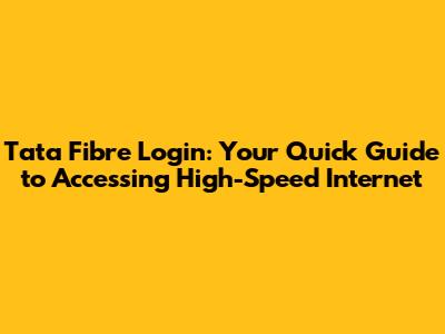 Tata Fibre Login: Your Quick Guide To Accessing High-Speed Internet