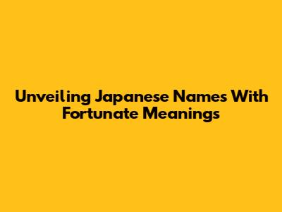 Unveiling Japanese Names With Fortunate Meanings