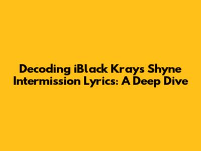 Hey music lovers! Ever found yourself lost in the mesmerizing world of iBlack Kray's tracks? If you're anything like me, you've probably spent hours dissecting the lyrics, trying to unravel the layers of meaning behind his words. Today, we're diving deep into the Shyne Intermission, a track that's captured the attention of many. We're going to break down the lyrics, explore the themes, and hopefully, gain a better understanding of what makes this song so captivating. Ready to get started?