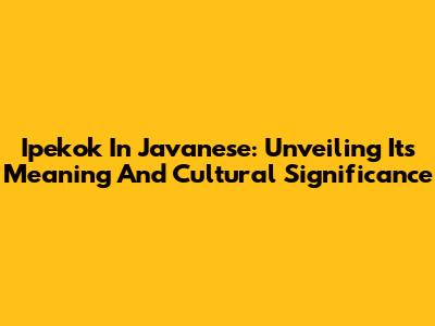 Ipekok In Javanese: Unveiling Its Meaning And Cultural Significance
