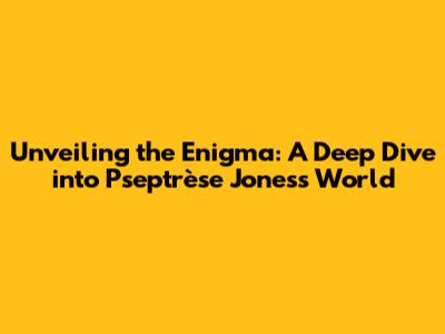 Unveiling The Enigma: A Deep Dive Into Pseptrèse Jones's World